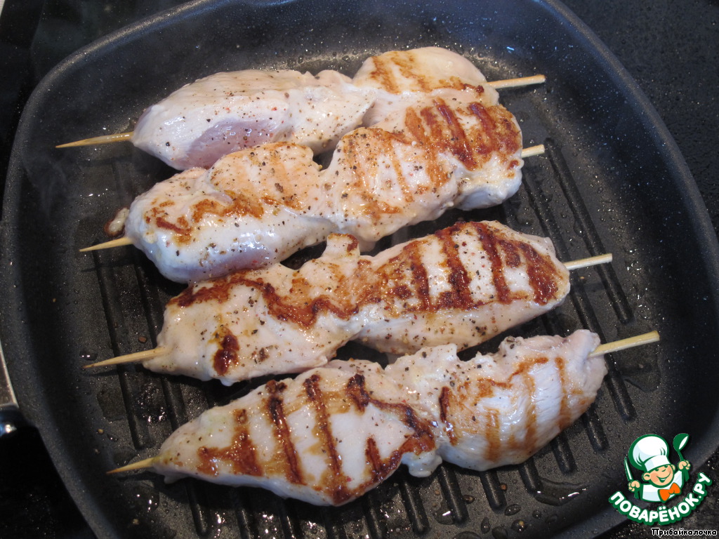 Рецепт ещё хорош тем, что прогреть шашлычки в соусе можно прямо при гостях и подать.