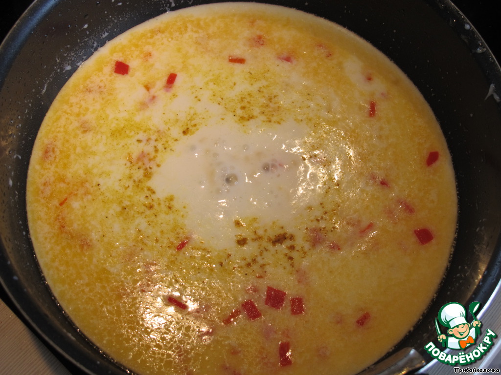 Добавить сливки и довести до кипения, снизить огонь и немного загустить соус медленным томлением.