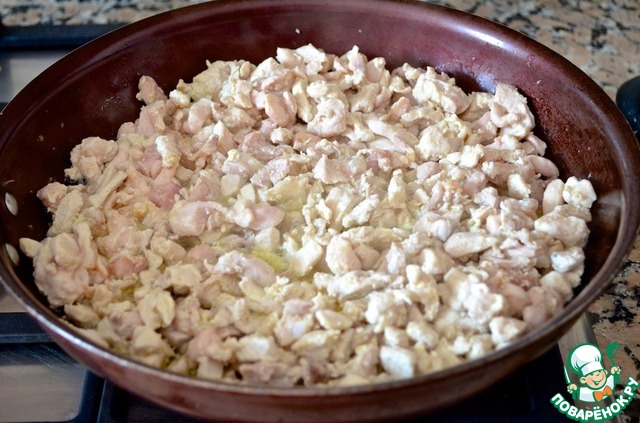 5. Обжарить курицу в оливковом масле, убрать с огня.