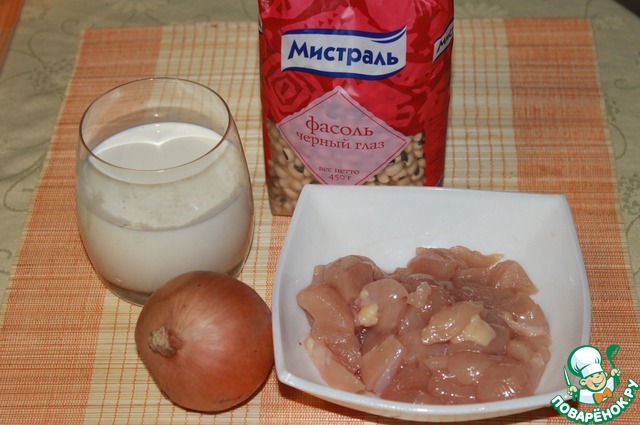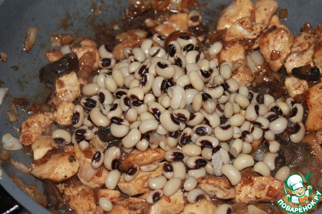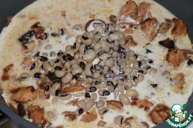 Фасолевое рагу, утомленное в сливках, с курочкой и белыми грибами