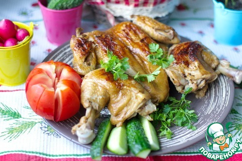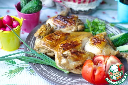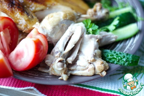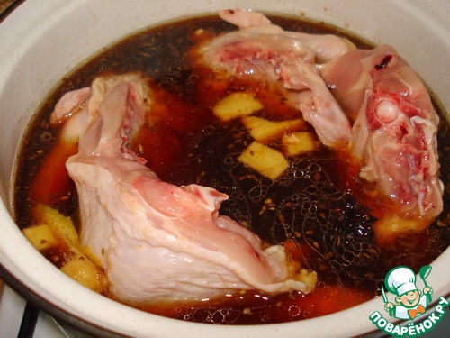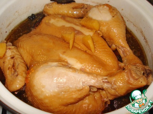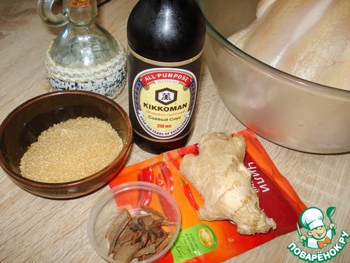 | В этом рецепте, курочка сначала отваривается в соевом соусе, со специями, получается очень ароматная. Потом готовится на гриле всего 10 минут, в результате потрясающее, ароматное сочное мясо. |