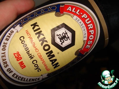 Перед приготовлением на гриле, курочку вынимаем из бульона, высушиваем. Смазываем соевым соусом Вок от Kikkoman.