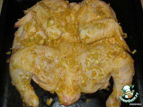 Намазать этой смесью курицу и оставить мариноваться на пару часов.