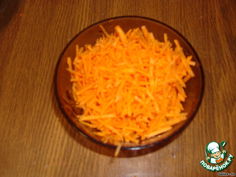 Морковь очистить, нарезать полосками (я воспользовалась корейской теркой).