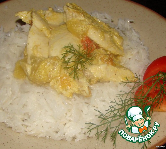 Курица под молочным соусом с яблоками и карри