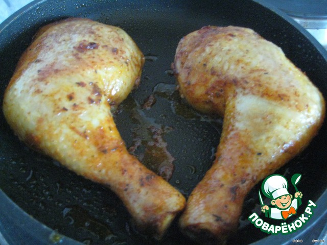 окорочка солим, перчим и обжариваем с двух сторон до образования румяной корочки.