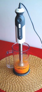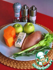 Запеченные яблоки очистить от кожуры и семечек. Пюрировать вместе с тыквой и черешком сельдерея. Посолить.