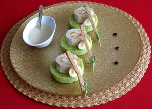Из куриного филе приготовить фарш с добавлением розмарина, соли, перца.