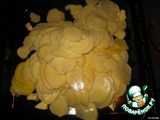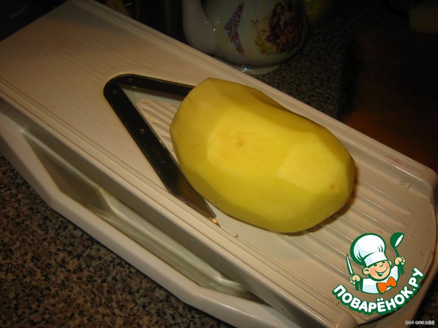 Картофель натереть на терке"Бернере" или тонкими ломтиками нарезать