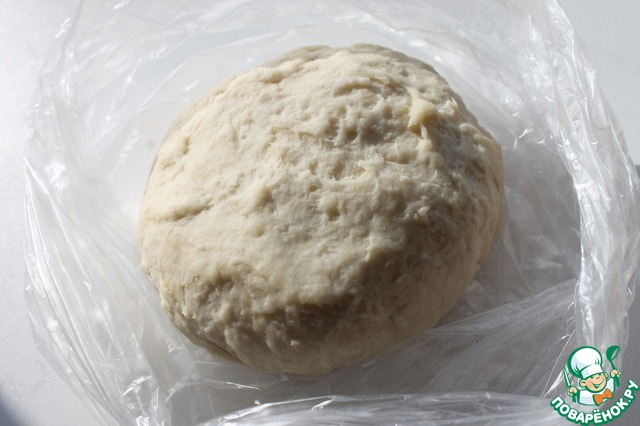 Из муки, воды, масла и соли замесить мягкое, эластичное тесто. Положить в пакет на время приготовления фарша