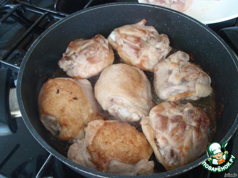 3. Куриные ножки и крылышки Вымыть (я брала куриные бедрышки), тщательно обсушить. Влить в сковороду оставшееся масло, обжарить куски курицы, по 4 мин (я по 10мин) с каждой стороны. Приправить солью.