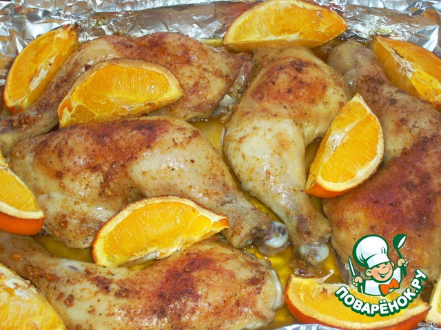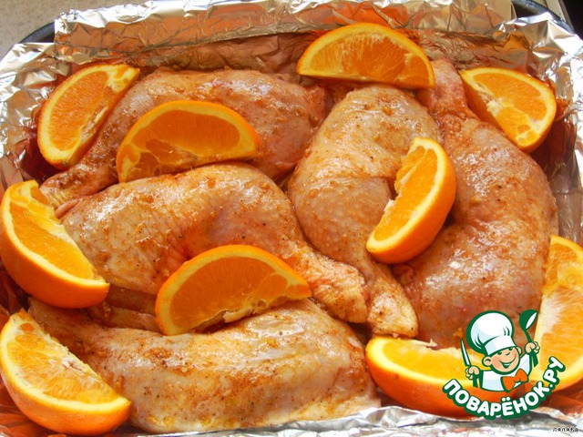Окорочка в апельсинах готовы! Мясо очень нежное!