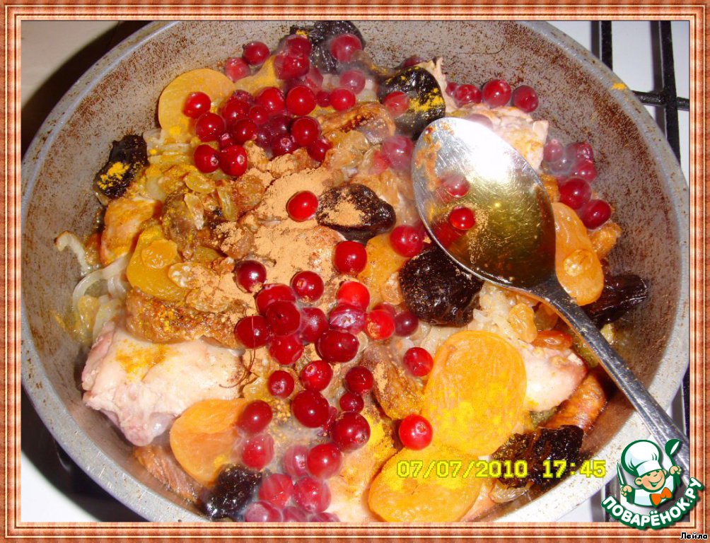 Жаркое из курицы с сухофруктами и белым вином