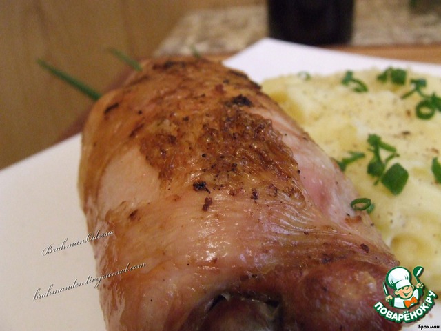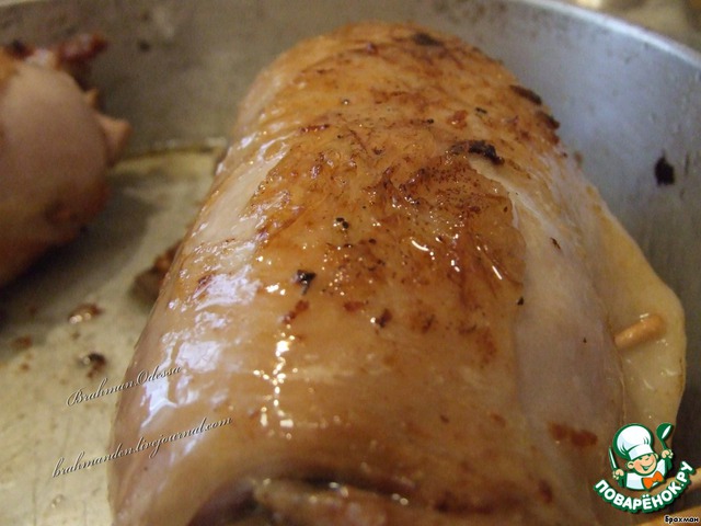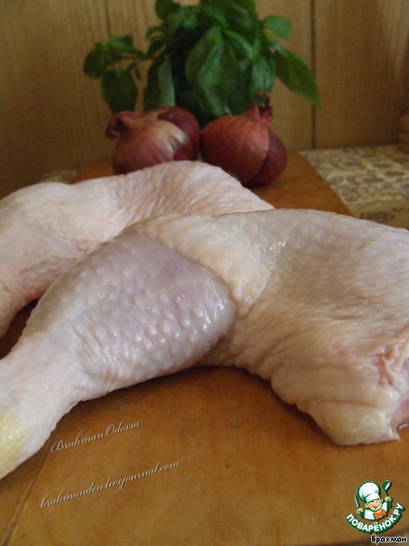 Включаем заранее духовку на 190*С, кладем обжаренные окорочка в небольшую форму и запекаем около получаса.