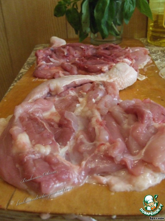 Разрезали? Удалили? Ножом слегка надрезаем мясо и слегка отбиваем.