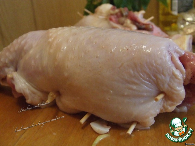Для этого мы разрезаем мякоть и аккуратно удаляем кости, оставляя только сантиметр кончика кости. Тут - либо как повезет, либо можно набить руку.