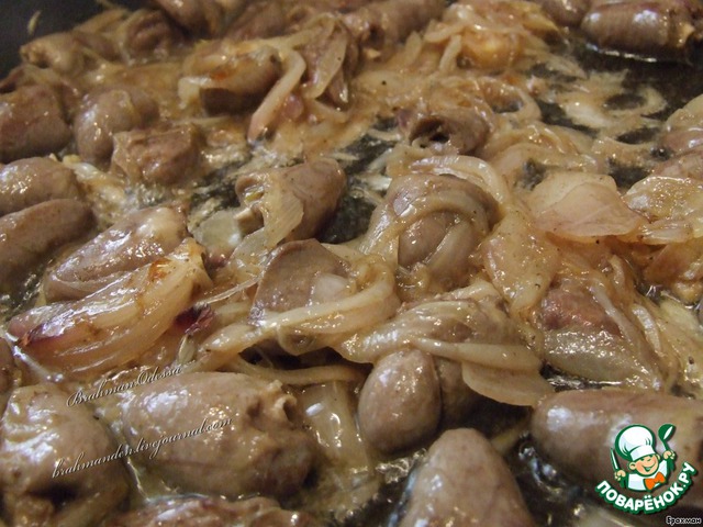 -Добавляем сердечки к нашему луку и тушим до готовности. Время не скажу, огонь и сковороды разные. Что сказать? пробуйте.