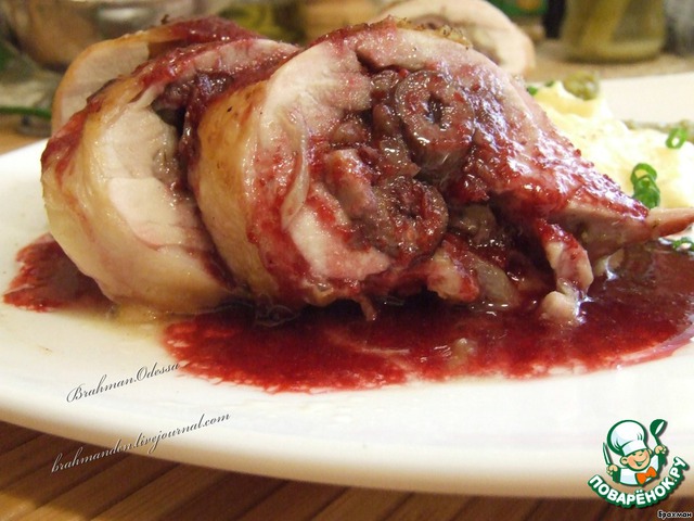 -На соус пришлось пустить в дело воображение: брусника, красное сухое вино (100 мл), сахар (2ст.л), 1/2 ч.л. темного бальзамико.