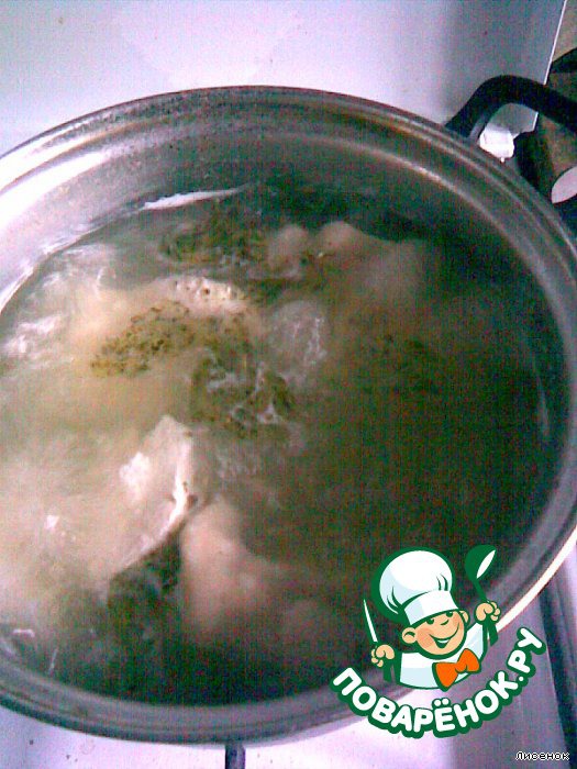 отварить курицу с добавлением специй(я кладу травы для птицы, прованские травы, гранулированный чеснок, соль)