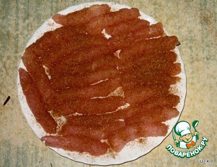 Посыпаем приправой с обеих сторон. У меня была "Для жарки мяса"