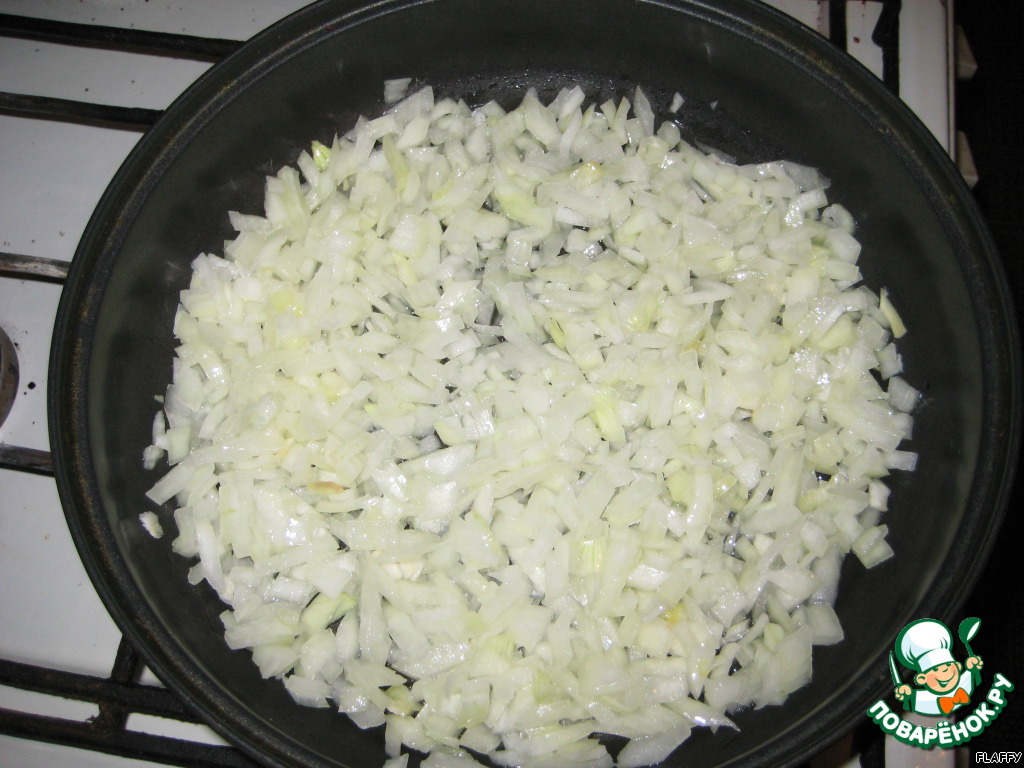 Лук мелко нарезать, пассеровать в масле до прозрачного состояния.