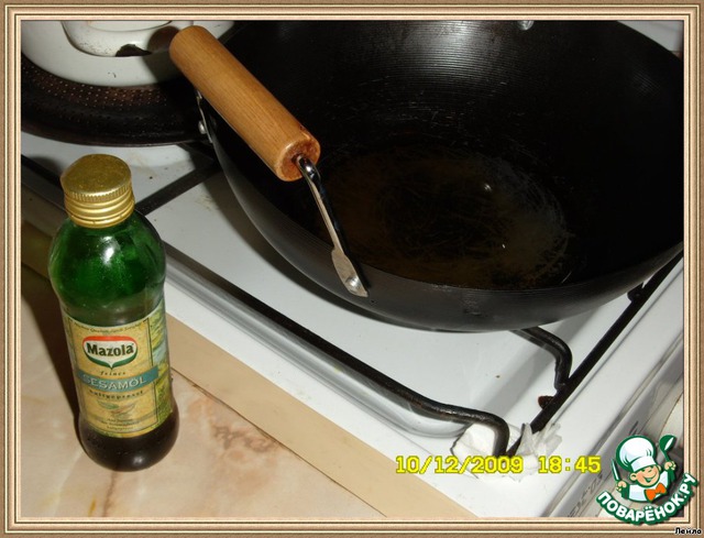 кунжутное масло, соевый соус и рисовый уксус (заменила на бальзамический, не выдержанный уксус), хорошо перемешать.