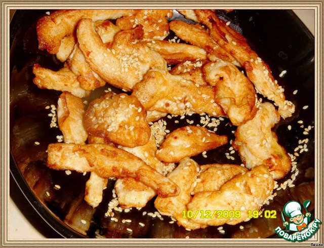 | Нежнейшие куриные грудки, порезанные соломкой, с кунжутом. Люблю китайскую кухню за ее простоту, пикантность. Спасибо Виточке-belochkavita за рецепт. |