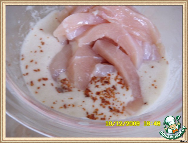 и обжарить полоски куриного мяса партиями, примерно 1-2 минуты