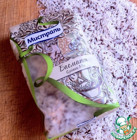 Для начала отварим микс риса басмати и киноа от Мистраль. Зальем водой в соотношении 1:2. Когда вода закипит, убавляем огонь и варим крупу 10 минут. Она должна остаться немного недоваренной. Лишнюю воду сливаем. Микс удивительно ароматный и рассыпчатый.