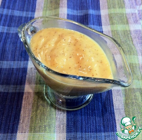 Для соуса в небольшую кастрюльку положим горчицу и зальём её вином. Прогреваем на огне около 5 минут, чтобы испарился запах алкоголя. Добавляем сливки и провариваем до загустения. Соль и перец добавляем по вкусу.