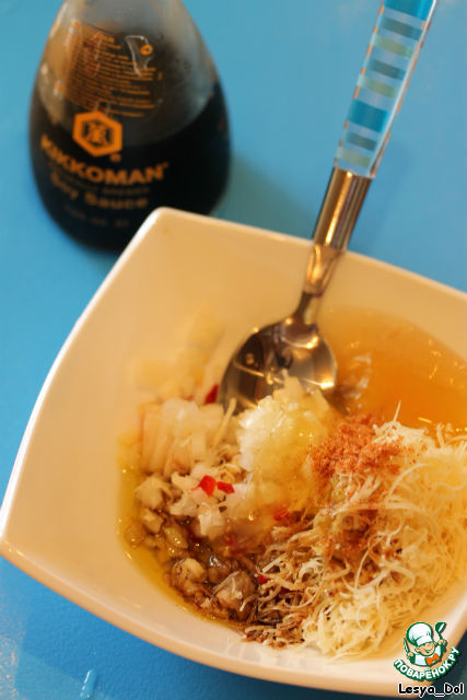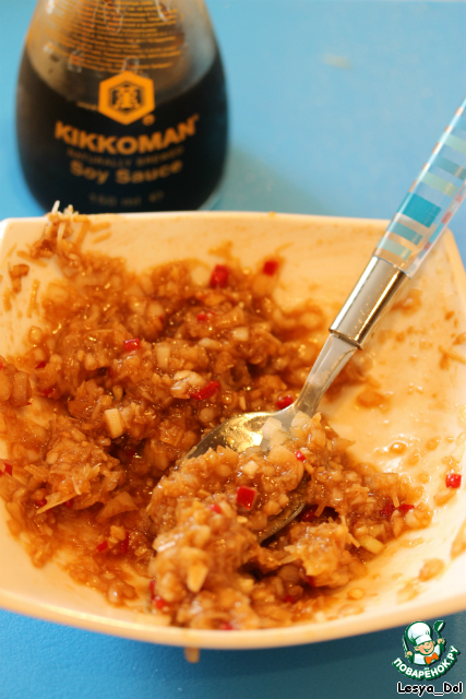 Все смешать. Добавить соевый соус, мед, 1-2 ст. л. оливкового масла.
