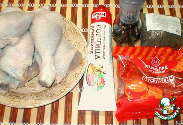 Для соуса растопите апельсиновый мармелад и добавьте горчицу (добавляйте умеренно, все зависит от остроты горчицы).