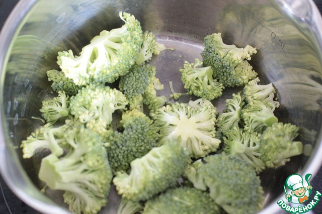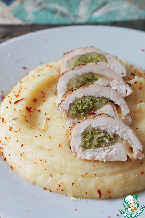 На филе выкладываем сыр, сверху пюре из брокколи.