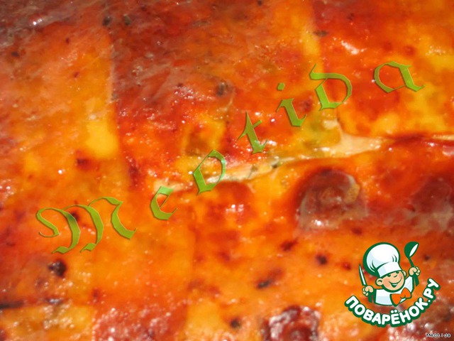 Отправляем в духовку готовиться где-то на часик. Чтобы сырная корочка не подгорела, можно форму прикрыть фольгой.