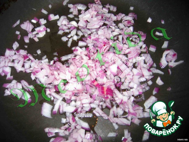 Лук чистим и меленько нарезаем ножиком, а затем обжариваем до легкой золотистости на разогретой сковородке фирмы Scarlett :)
