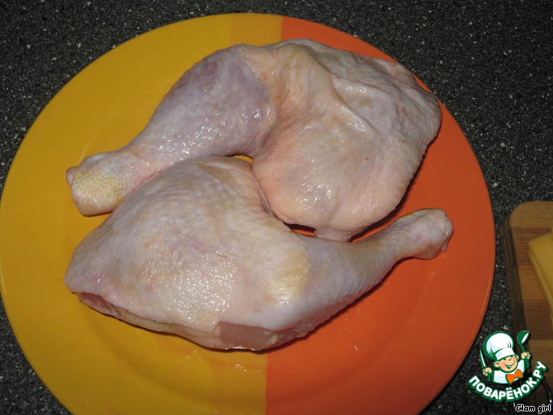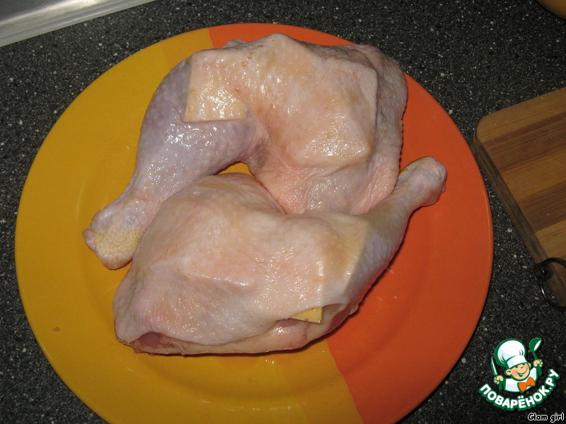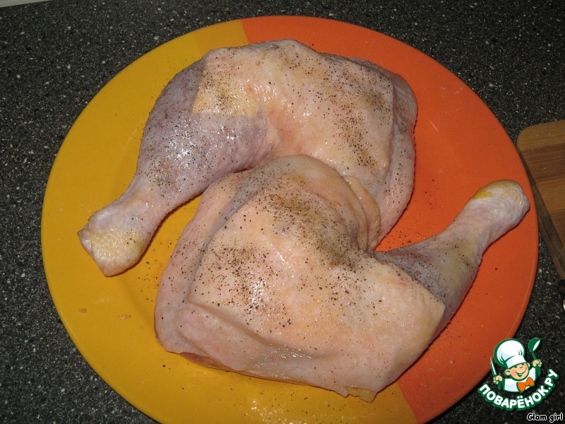 Солим и перчим окорочка, можете добавить свои любимые специи для курицы