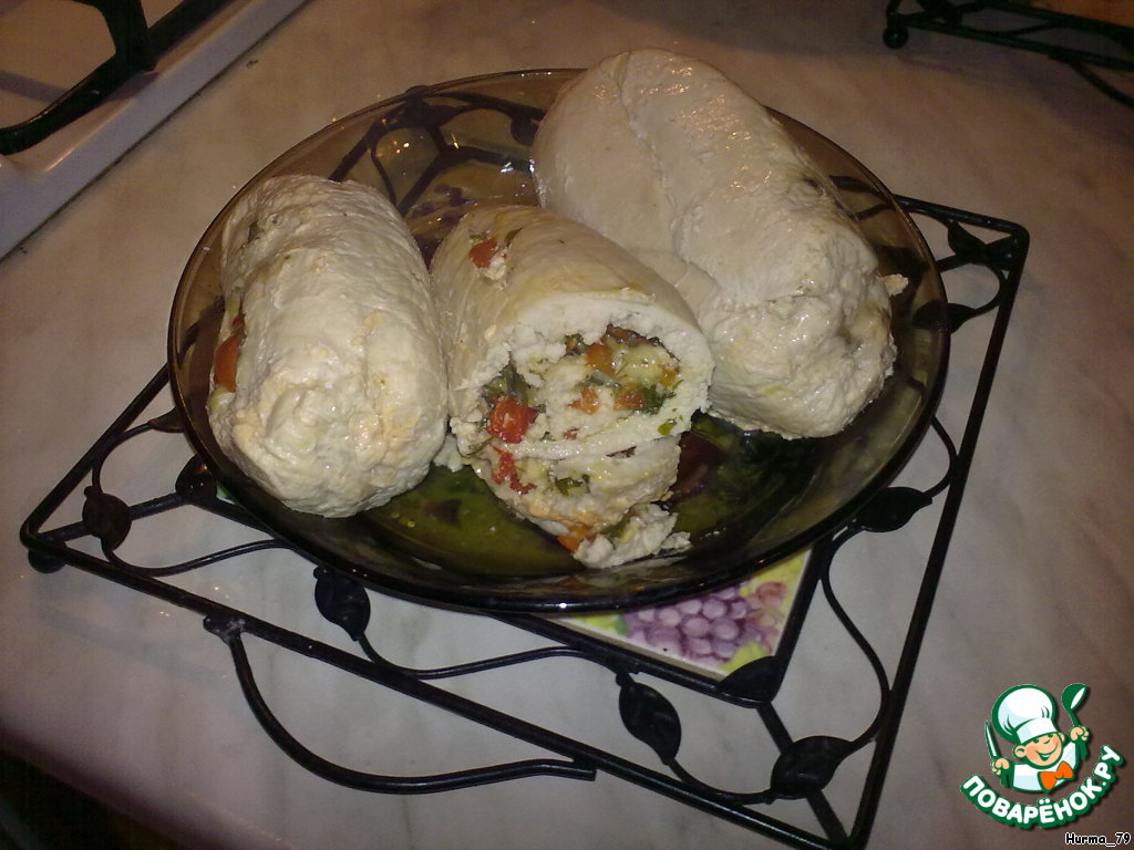 | Рулеты куриные с начинкой из овощей, приготовленные в собственном соку. |