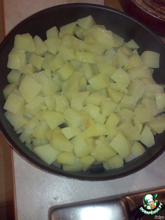 Отварить картофель, выложить его в форму.