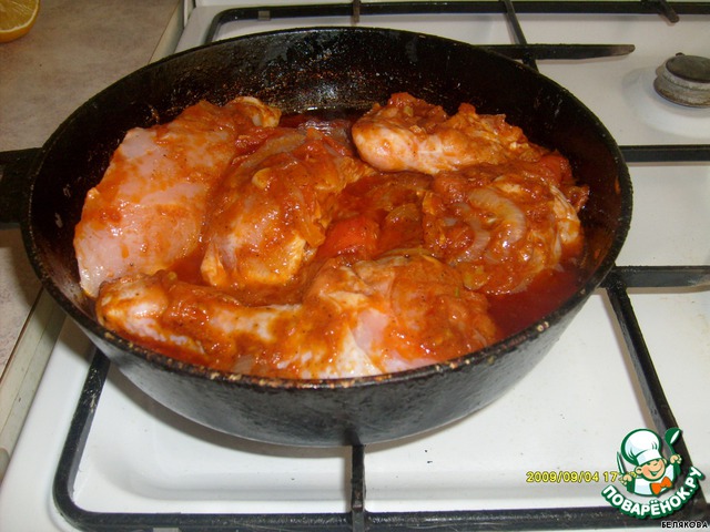 Положить куски курицы....потушить немного....