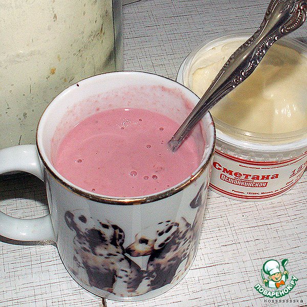 Отливаем часть жидкости в кружку (половина кружки), немного остужаем и добавляем туда сметану и муку. Перемешиваем вилкой до образования жидкого соуса.