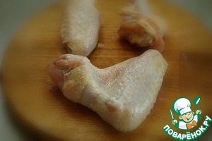 Вообще в оригинале курица маринуется в смеси томатного и соевого соусов с добавлением чеснока и специй, но можно замариновать курицу просто в любом любимом маринаде. Я взяла соевый соус, немного томат. пасты, чеснок, немного острого перца, типа чили, немного имбиря, паприку, и соль (не забудьте, что соевый соус солёный), в маринад куриные крылышки, перемешать, накрыть крышкой или пищевой пленкой и оставить при комнатной температуре на 1 час мариноваться.