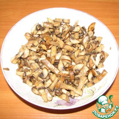 Грибы мелко порежем, окорочка как можно старательней разберем на части и отделим мясо.