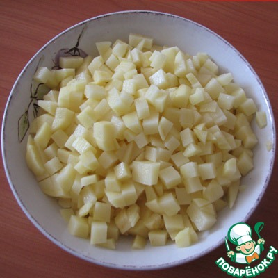 Картошку порежем мелкими кубиками, брокколи порежем тоже мелко