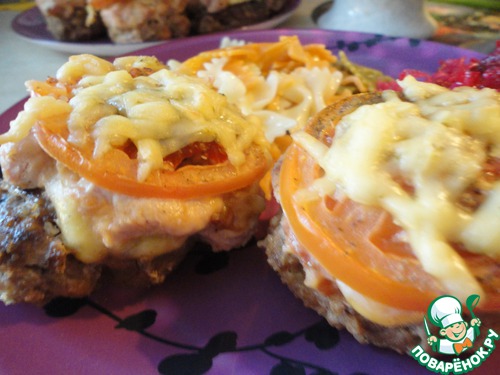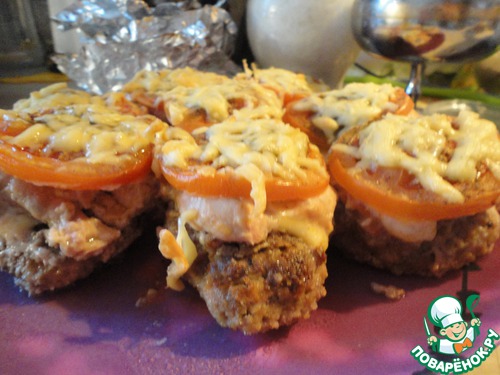 Вот наши готовые котлето-башенки. Мне и доце хватило по одной такой на завтрак. Они достаточно сытными получились и при этом относительно диетическими. Тут мало жира, нет ни свинины, ни майонеза (который я, кстати, в духовку принципиально не сую). Ну разве что сыр, но его не так и много.