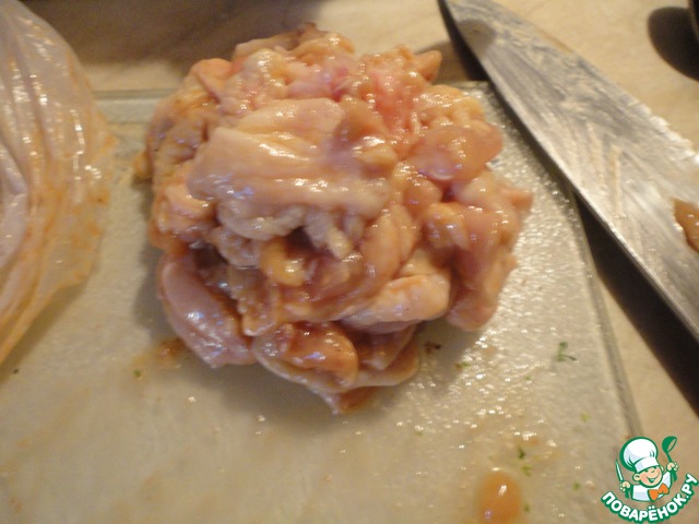 | Наверное, это блюдо нужно было назвать как-то иначе, но все действительно началось с купленного куриного филе из куриных бедрышек. Это как раз самая любимая моя часть курицы, хоть, говорят, что она и самая вредная. Ну да ладно, жить вообще вредно! Долго думала что-же из него приготовить. Блюдо придумывала на ходу и вот, что вышло. А получилось очень вкусно - заходите, угощайтесь! |