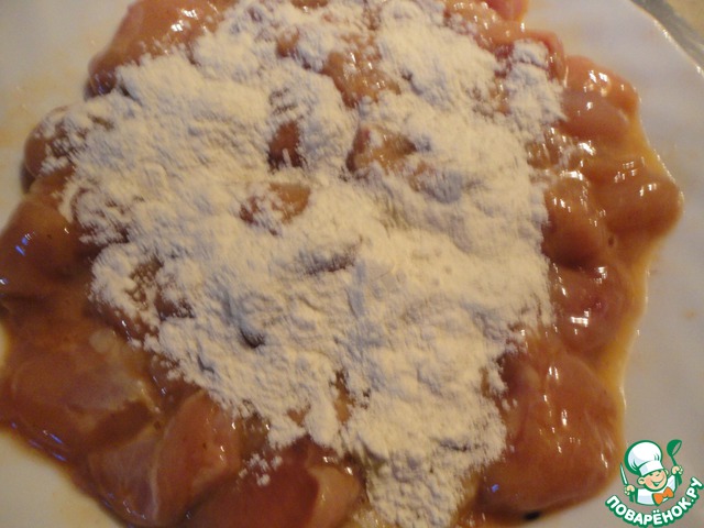 Филе разрезала на относительно одинаковые кусочки, ориентируясь на размер самого маленького.
