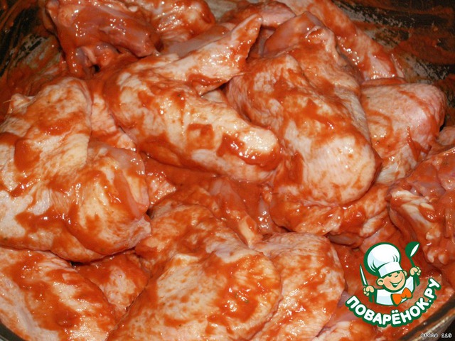 Замариновать в этой смеси крылья минимум на 2 часа.