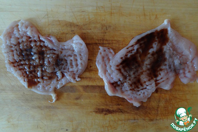 Поперечить по вкусу, залить соевым соусом. оставить мариноваться минут на 40.