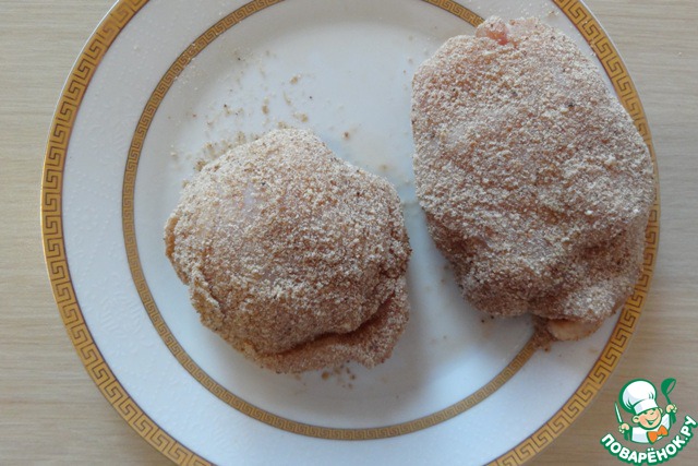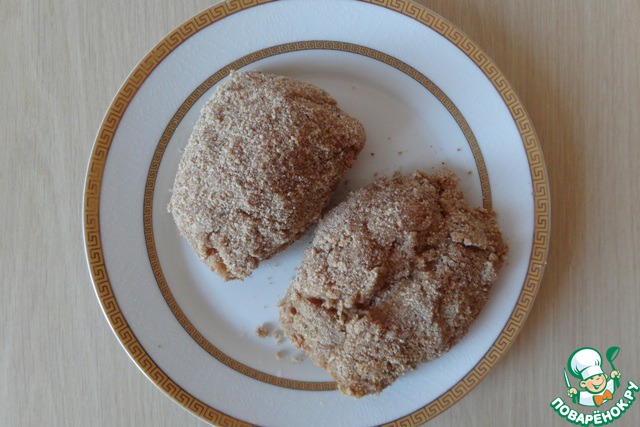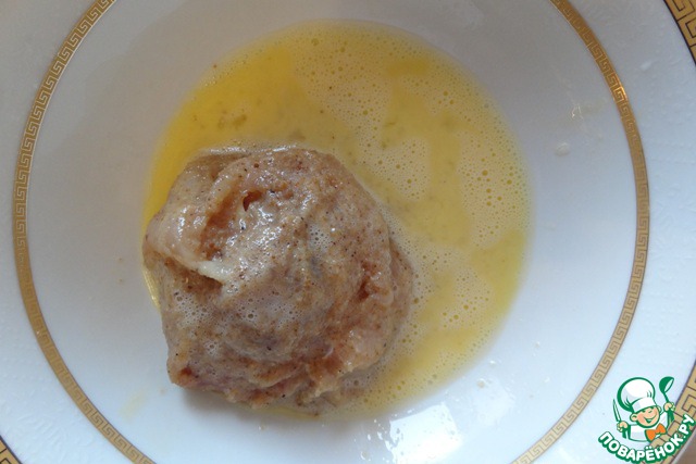 Еще раз запанировать в сухарях. Выложить на досточку или тарелку и отправить в морозилку минут на 20-30. Панировка должна лишь немного застыть, но не заморозиться.