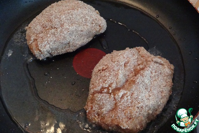 Разогреть масло. Обжарить шницели с двух сторон до румяной корочки.